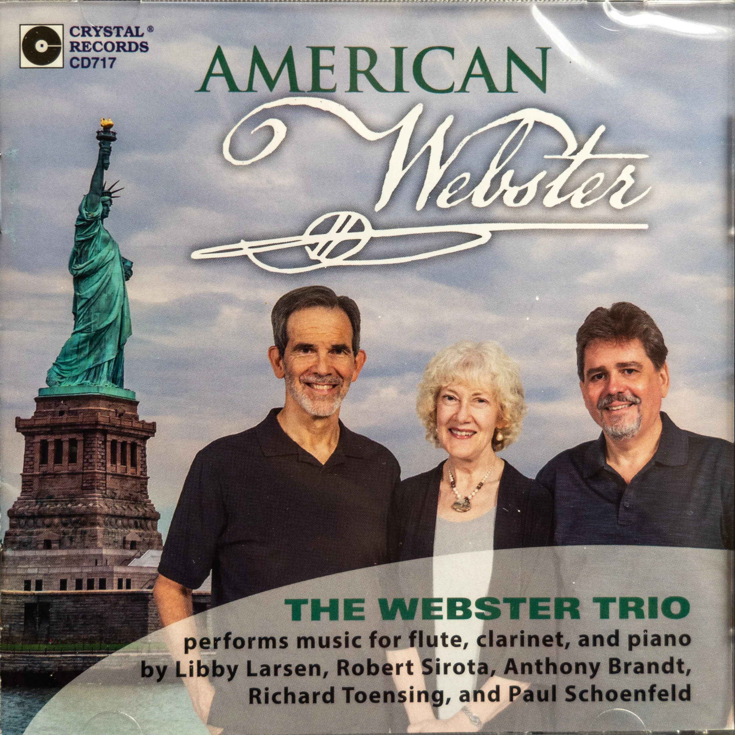 American Webster (Crystal 717). Works by Libby Larsen, Robert Sirota, Anthony Brandt, Richard Toensing, and Paul Schoenfeld performed by the Webster Trio (Michael Webster, clarinet; Robert Moeling, piano).
